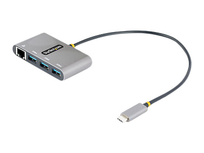 StarTech.com 3-Port USB-C Hub with Ethernet, 3x USB-A Ports, Gigabit Ethernet, USB 3.0 5Gbps, Bus-Powered, USB Type-C Hub w/ GbE and 1ft/30cm Long Cable, Portable USB-C to USB-A Laptop Hub - USB Expansion Hub (HB30C3A1GEA2) - concentrateur (hub) - 3 ports